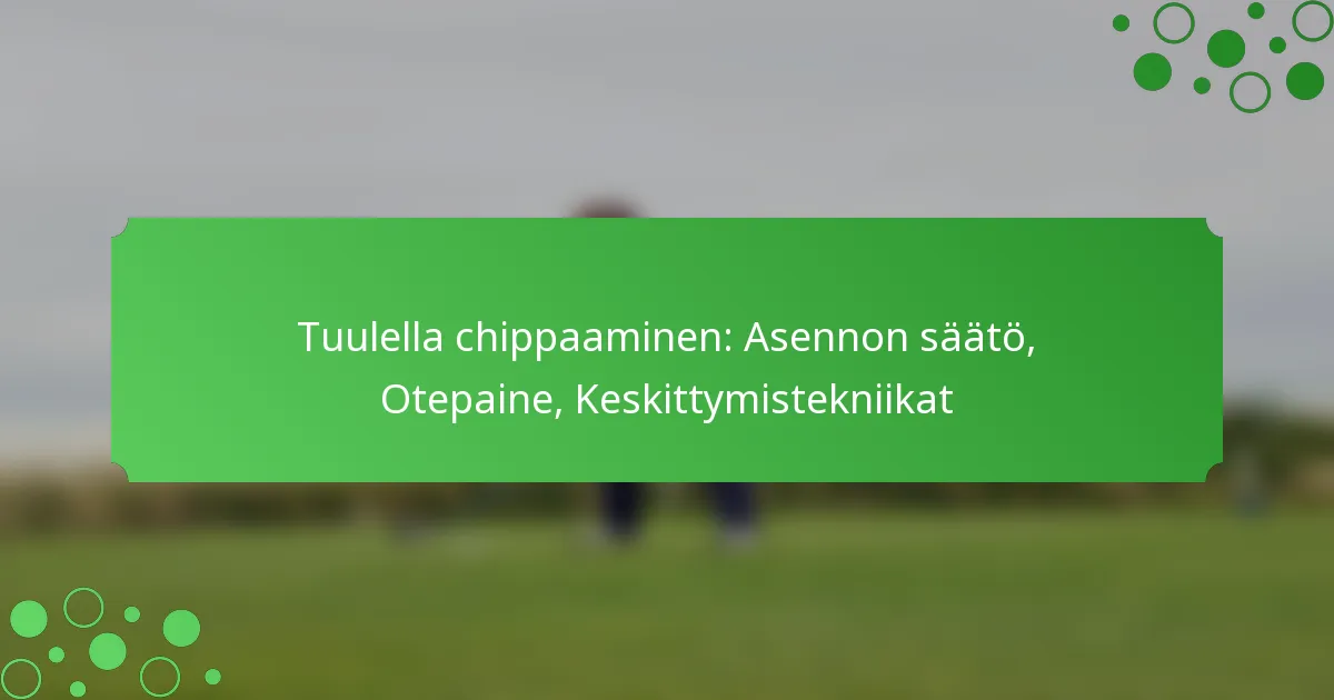 Tuulisissa olosuhteissa chipatessa on tärkeää säätää asentoa, otteen painetta ja keskittymistekniikoita huolellisesti, jotta lyönnit onnistuvat. Vakaa asento auttaa vastustamaan tuulen vaikutuksia, kun taas tiukka mutta rento ote parantaa hallintaa ja tarkkuutta. Lisäksi tehokkaiden keskittymistrategioiden käyttäminen voi parantaa keskittymistä ja suoritusta, jolloin golfaajat voivat navigoida haastavissa sääolosuhteissa luottavaisesti.