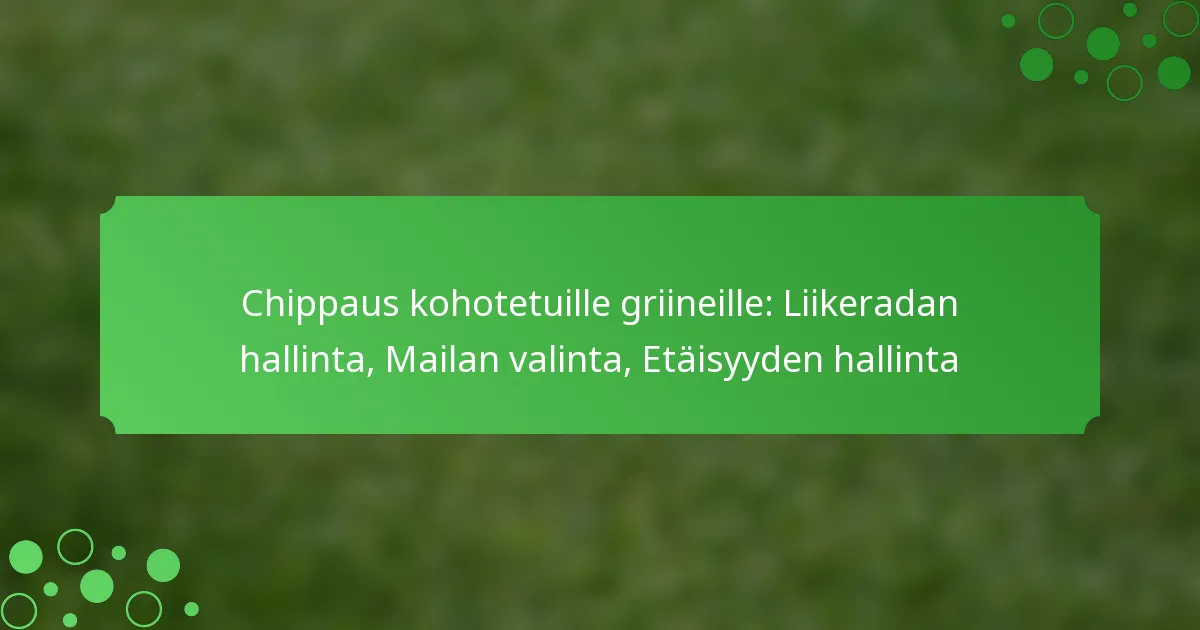 Etäisyyden hallinta chipattaessa on ratkaisevan tärkeää halutun lopputuloksen saavuttamiseksi greenillä. Se tarkoittaa kykyä lyödä pallo oikeaan etäisyyteen kohteeseen, mikä usein riippuu tekijöistä, kuten mailan valinta, swingin pituus ja pelattava lyöntityyppi. Hyvä ymmärrys näistä elementeistä voi merkittävästi parantaa suoritustasi.