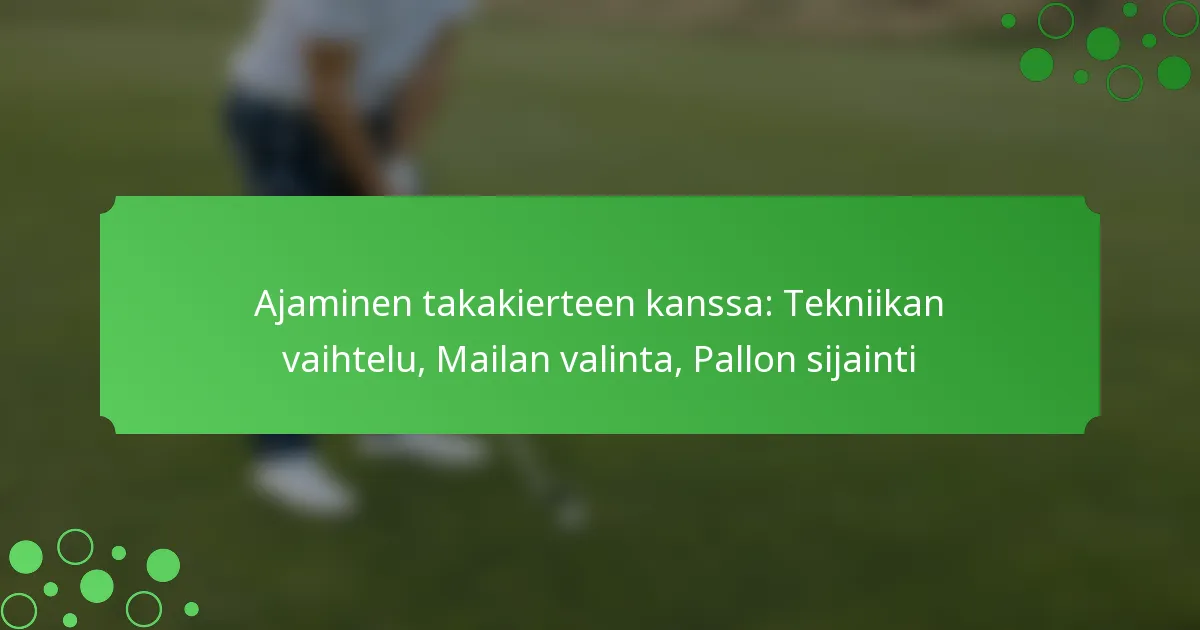Pallon sijainti on merkittävässä roolissa takakierroksen tuottamisessa. Parhaiden tulosten saavuttamiseksi aseta pallo hieman eteenpäin asennossasi käyttäessäsi draiveria, ja keskelle wedge- ja rautamailoilla. Tämä sijoittelu mahdollistaa puhtaan iskun ja parantaa mahdollisuuksia takakierroksen luomiseen.