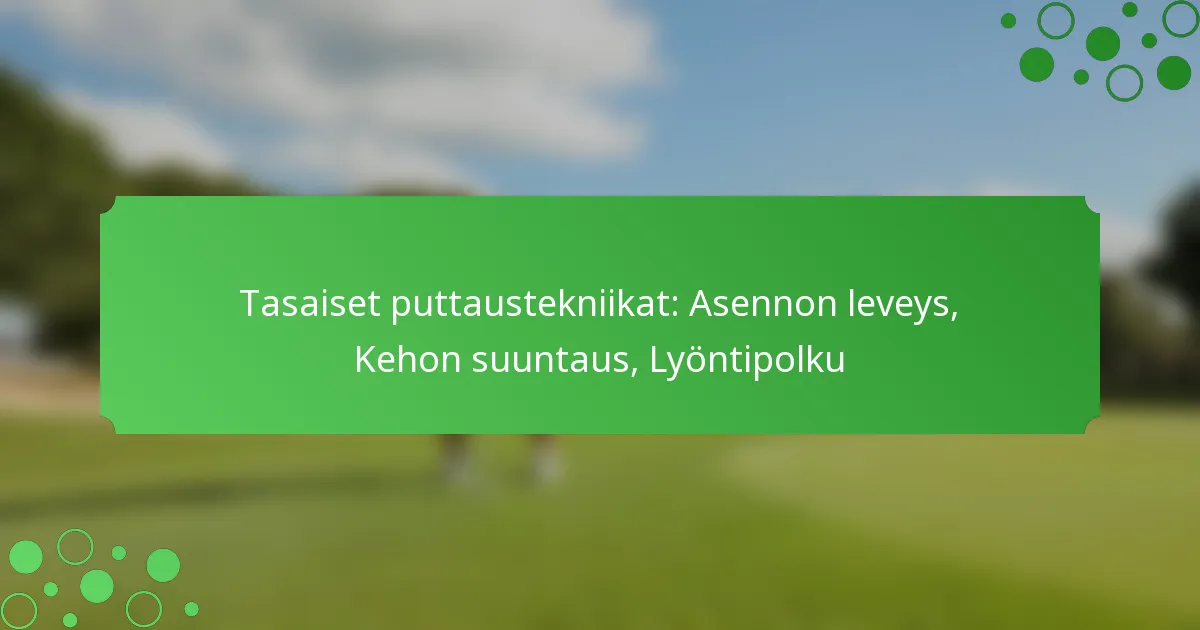 Tasaiset puttaustekniikat ovat olennaisia suorituksesi parantamiseksi viheriöllä, keskittyen kolmeen keskeiseen komponenttiin: asentoleveys, kehon linjaus ja lyöntipolku. Hallitsemalla nämä elementit golfaajat voivat parantaa tarkkuuttaan ja johdonmukaisuuttaan, mikä johtaa parempiin puttaustuloksiin.