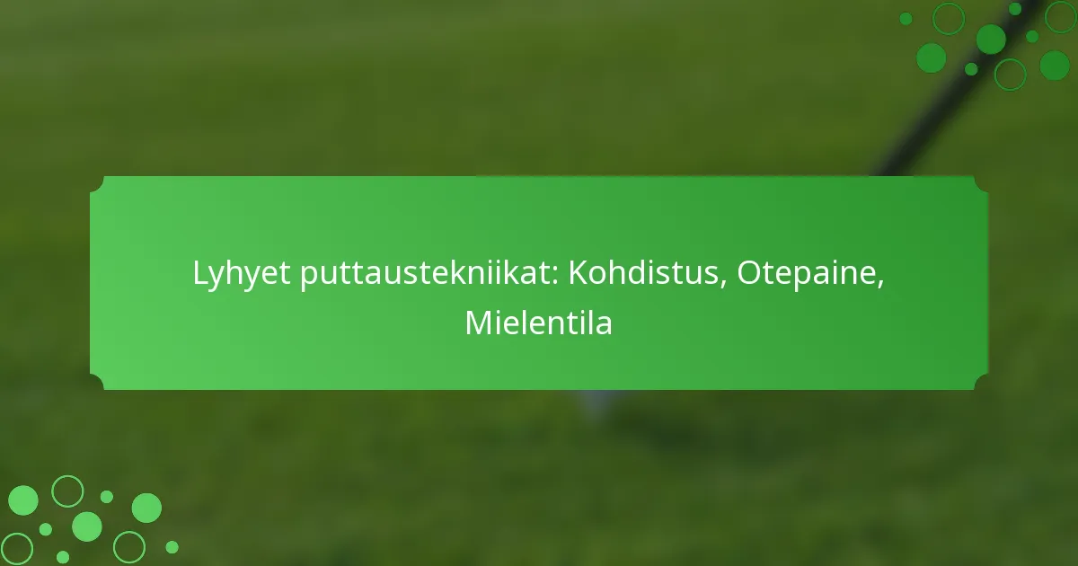 Lyhyet puttitekniikat ovat olennaisia golfareille, jotka haluavat parantaa suoritustaan viheriöllä, keskittyen linjaukseen, otteen paineeseen ja henkiseen keskittymiseen. Hallitsemalla nämä komponentit pelaajat voivat parantaa tarkkuuttaan ja johdonmukaisuuttaan, mikä johtaa parempiin kokonais tuloksiin. Oikea linjaus varmistaa, että kehosi ja putteri osoittavat kohti maalia, kun taas oikea otteen paine mahdollistaa optimaalisen tuntuman ja hallinnan jokaisessa putissa.