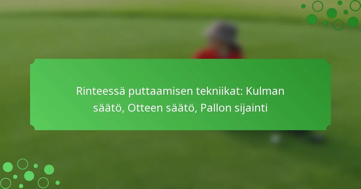 Rinteessä puttaamisen tekniikoiden hallinta on olennaista golfaajille, jotka haluavat parantaa suoritustaan epätasaisilla greeneillä. Avainmuutokset kulmassa, otteessa ja pallon sijainnissa voivat merkittävästi parantaa tarkkuutta ja hallintaa, jolloin pelaajat voivat navigoida rinteissä tehokkaasti. Hienosäätämällä näitä elementtejä golfaajat voivat saavuttaa vakaamman ja tarkemman puttauksen.